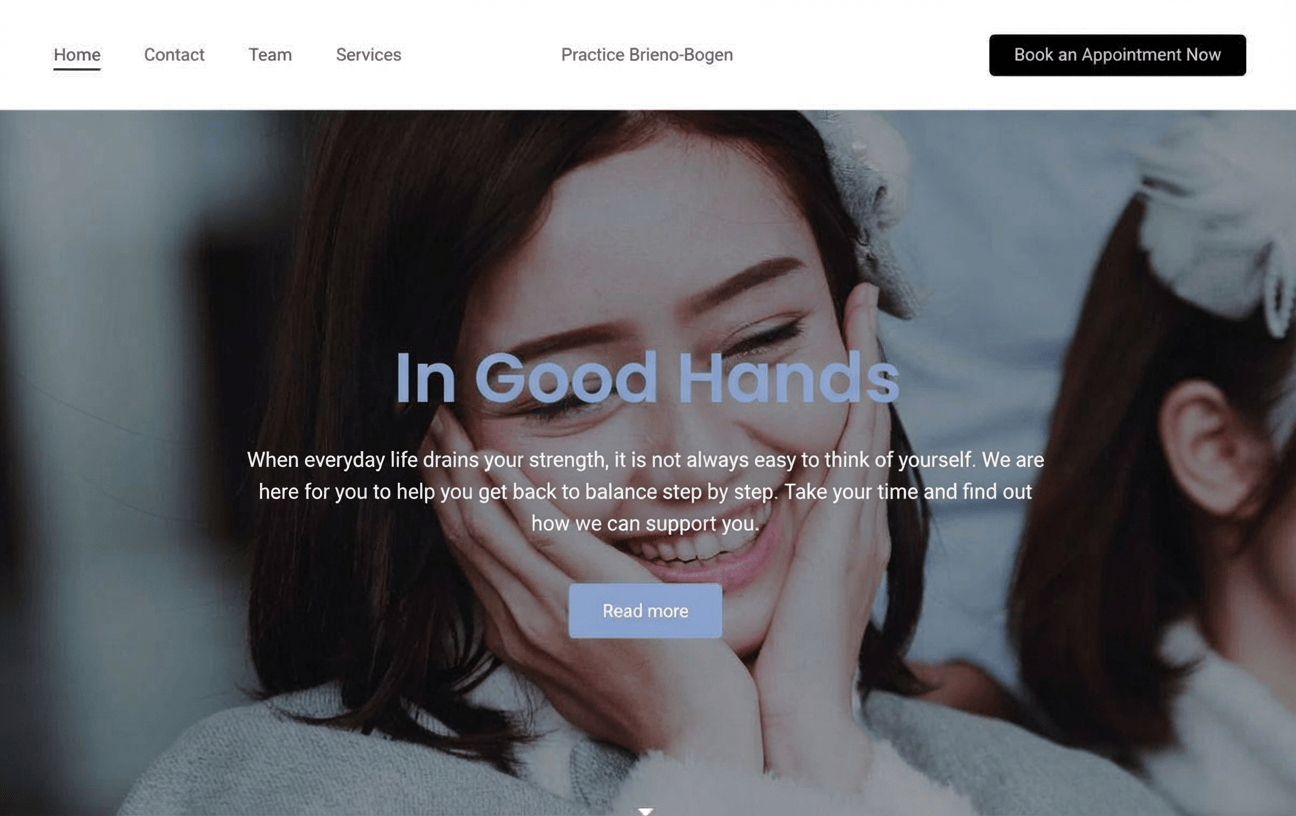 - Most important: Present your practice clearly and professionally — with real photos, a simple overview of your services, and contact details that are easy to spot. Also think about potential applicants. A privacy policy and the required site owner details shouldn’t be missing.