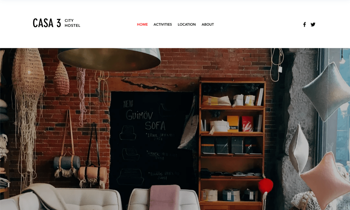 The “Suffolk” template from Squarespace offers a modern and stylish design. The “About us” section includes subpages that lead to information about the rooms, their amenities and prices.